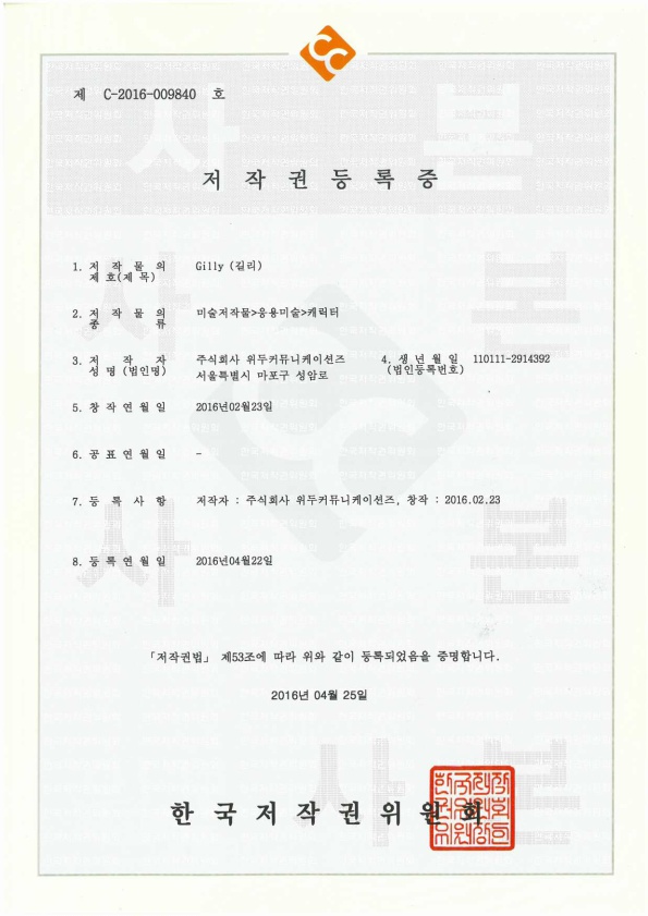 [한국/저작권] 길리 페이지 정보 작성자 WeDu 댓글 0건 조회 6,083회 작성일 19-05-30 19:07 본문 2016-04-22 저작권 C-2016-009840 길리 / 미술저작물>응용미술>캐릭터 List Previous[한국/저작권] 나무트 19.05.30 Next[한국/저작권] 리안의 수학 모험 19.05.30